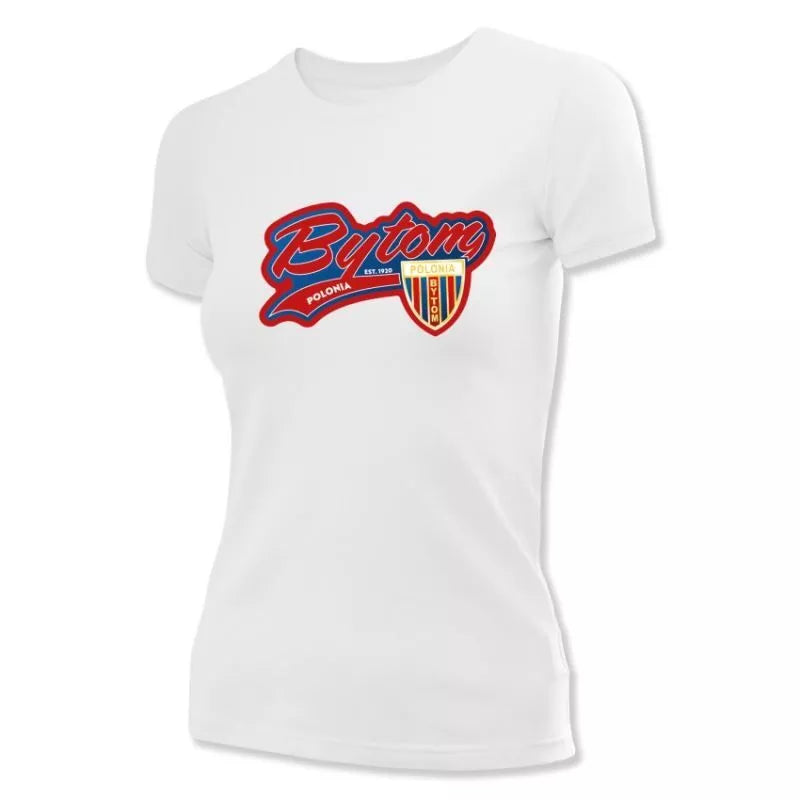 The KHP Polonia Bytom Classic Women's Short Sleeve T-Shirt is a perfect choice for fans of Bytom hockey. Made of high-quality materials, it ensures comfort and durability. The color of the shirt and the stylish "KHP Polona Bytom" logo on the front emphasize pride in the local team. Great for both matches and everyday wear, ideal for fans who want to support their team in a fashionable and sporty way. Product Features: Fashionable and Comfortable Cut: Modern cut that emphasizes style and guarantees comfort. Logo: Stylish "KHP Polonia Bytom" logo on the chest expressing team affiliation. No Side Seams: Eliminates potential chafing, increasing comfort. Double Shoulder Seams: Ensures greater durability. Lycra-Reinforced Rib: Guarantees a perfect fit and added durability. Material: 85% cotton and 15% viscose for softness and durability. Weight: 190 g/m², making the shirt lightweight yet durable. The KHP Polonia Bytom Classic Woman T-shirt is the perfect choice for every fan who values comfort, style and support for their team.
