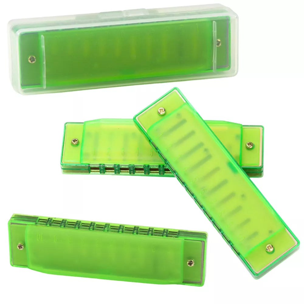 10 skylių armonika pradedantiesiems, žalios spalvos dėklas