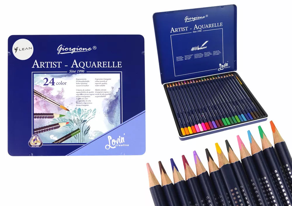 24 akvarelinių pieštukų rinkinys metalinėje dėžutėje