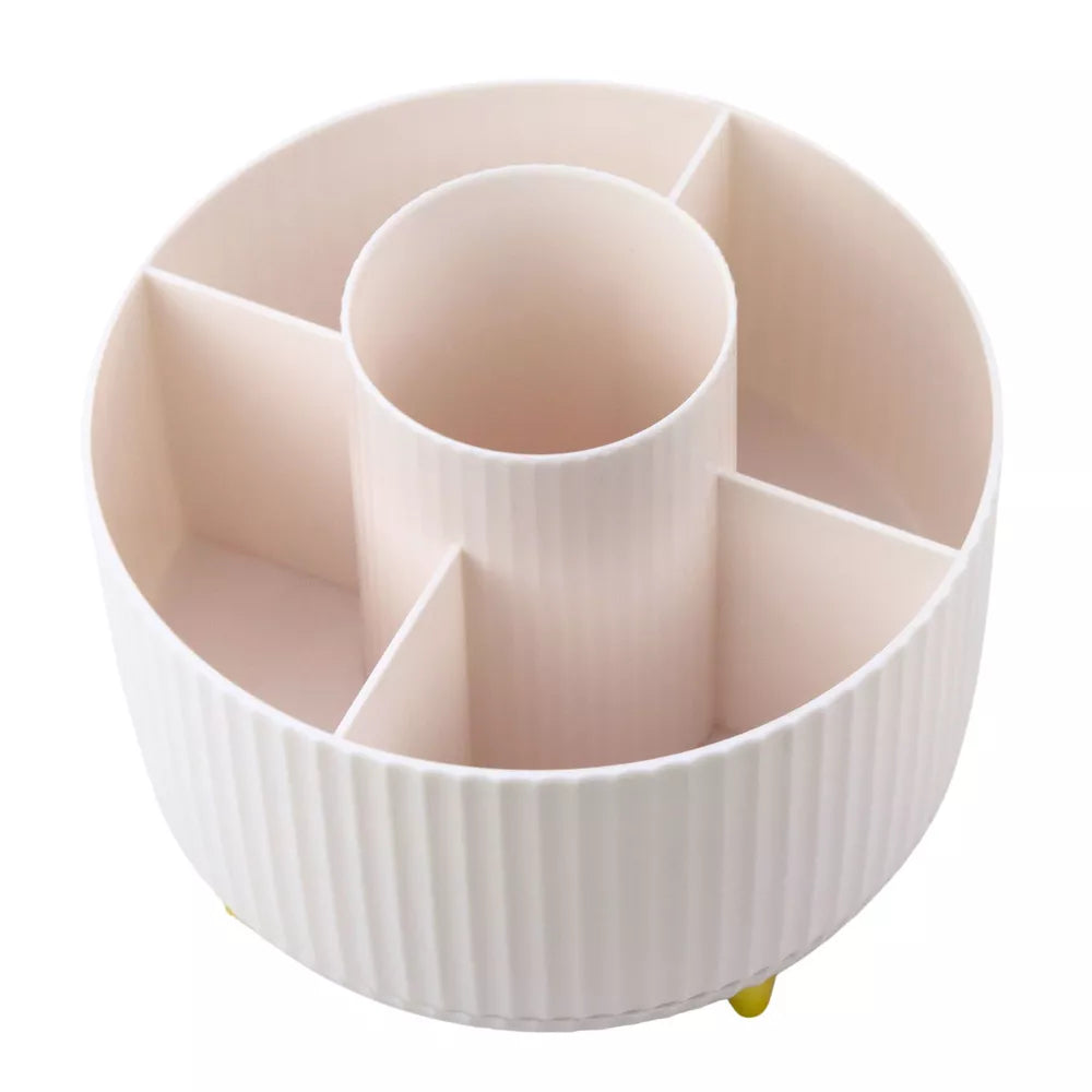 360° besisukantis kosmetinių šepetėlių organizatorius su 5 skyreliais, baltas