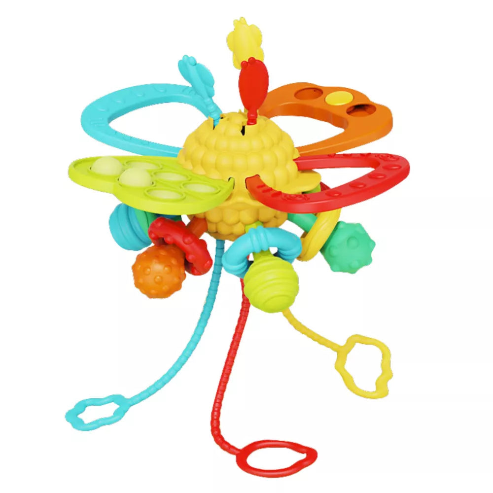 6 viename jutimo žaislas kramtukas su traukiamomis virvutėmis, „Pop-It“, spalvingas