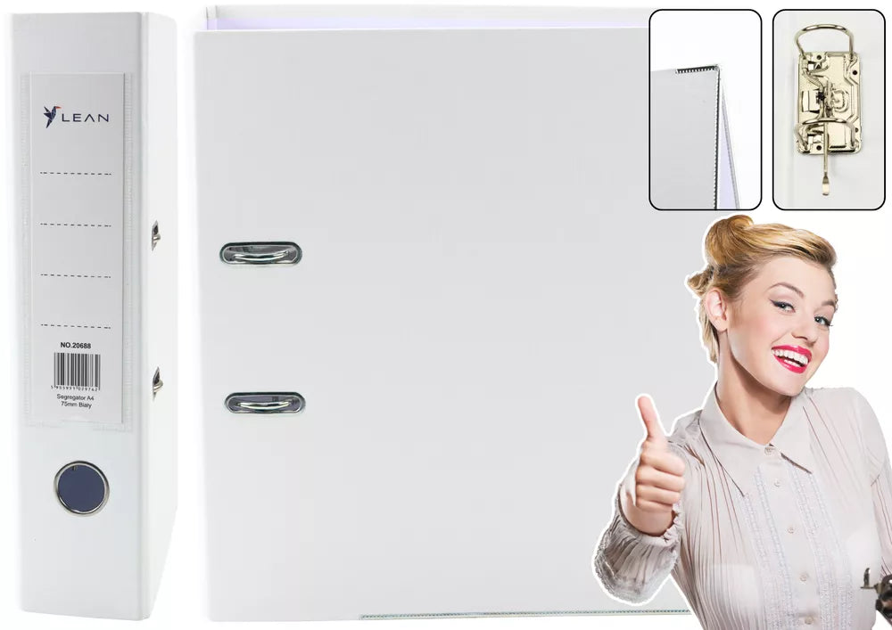 A4 formato dokumentų segtuvas / 75 mm svirties mechanizmas, baltas A4 formato dokumentų segtuvas su plačiu 75 mm stuburu elegantiškos,... Skaityti daugiau