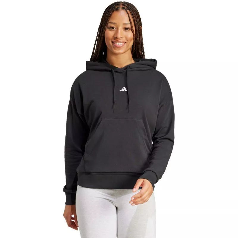 Moteriskas adidas Essentials džemperis su mažu logotipu, pagamintas iš prancūziško frotė audinio, juodas JD7989
