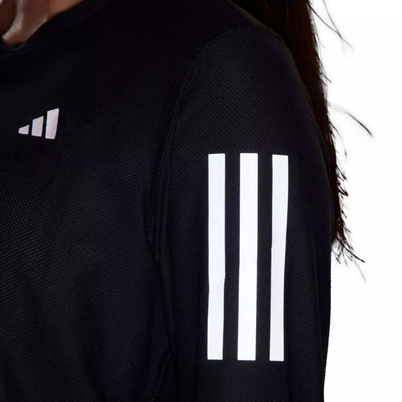 adidas Own The Run marškinėliai ilgomis rankovėmis, juodi IN1568. Šie adidas moteriški marškinėliai ilgomis rankovėmis puikiai tinka bėgimui. Jų tinklinė konstrukcija yra lengva ir patvari. Aeroready technologija padeda pašalinti drėgmę. Atspindintys elementai. Nykščio skylutės rankogaliuose. Apvali apykaklė. Medžiaga: 86% perdirbtas poliesteris, 14% elastanas.