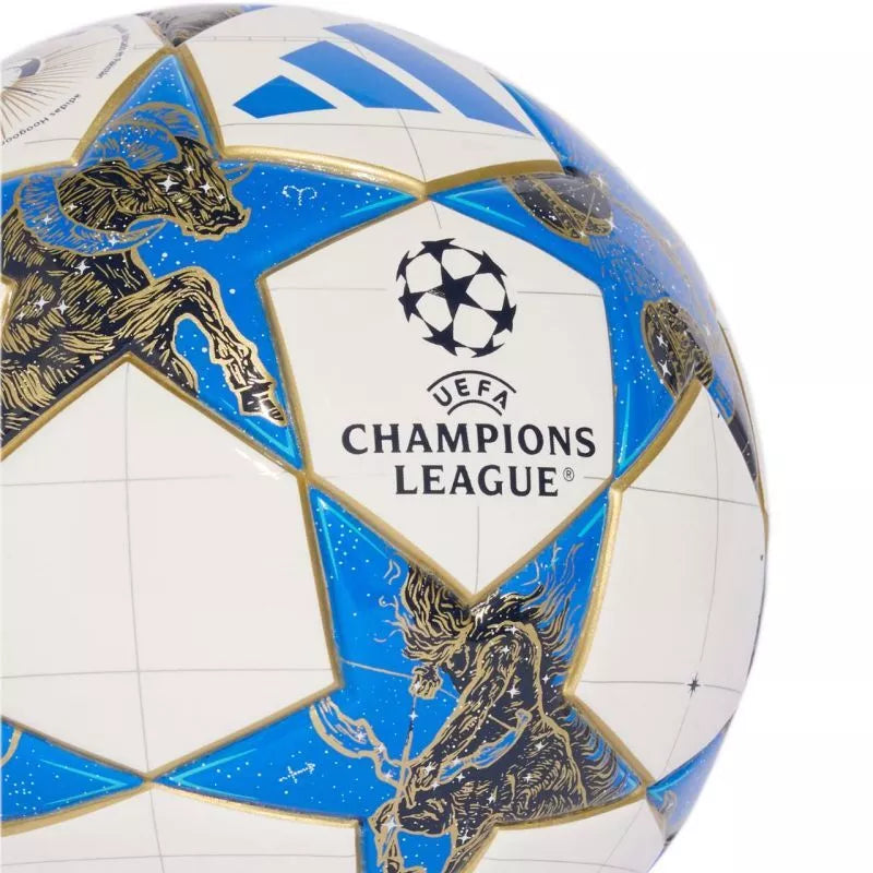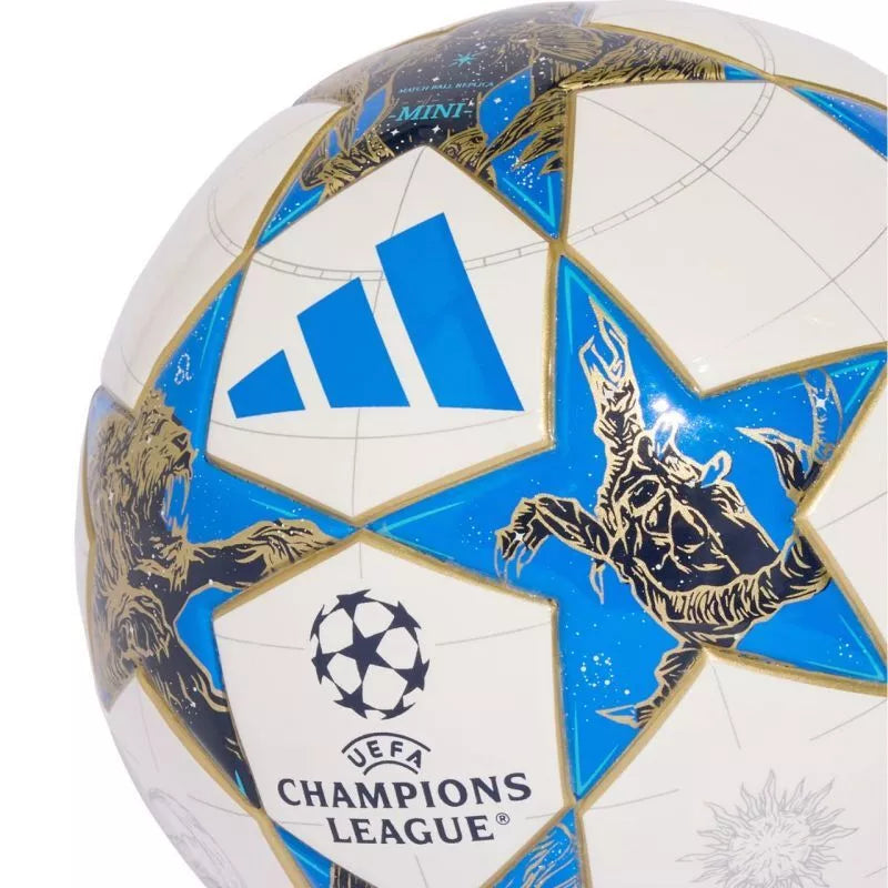 adidas UCL Mini 25/26 League Stage Futbolo kamuolys, baltas, mėlynas ir auksinis JP1544