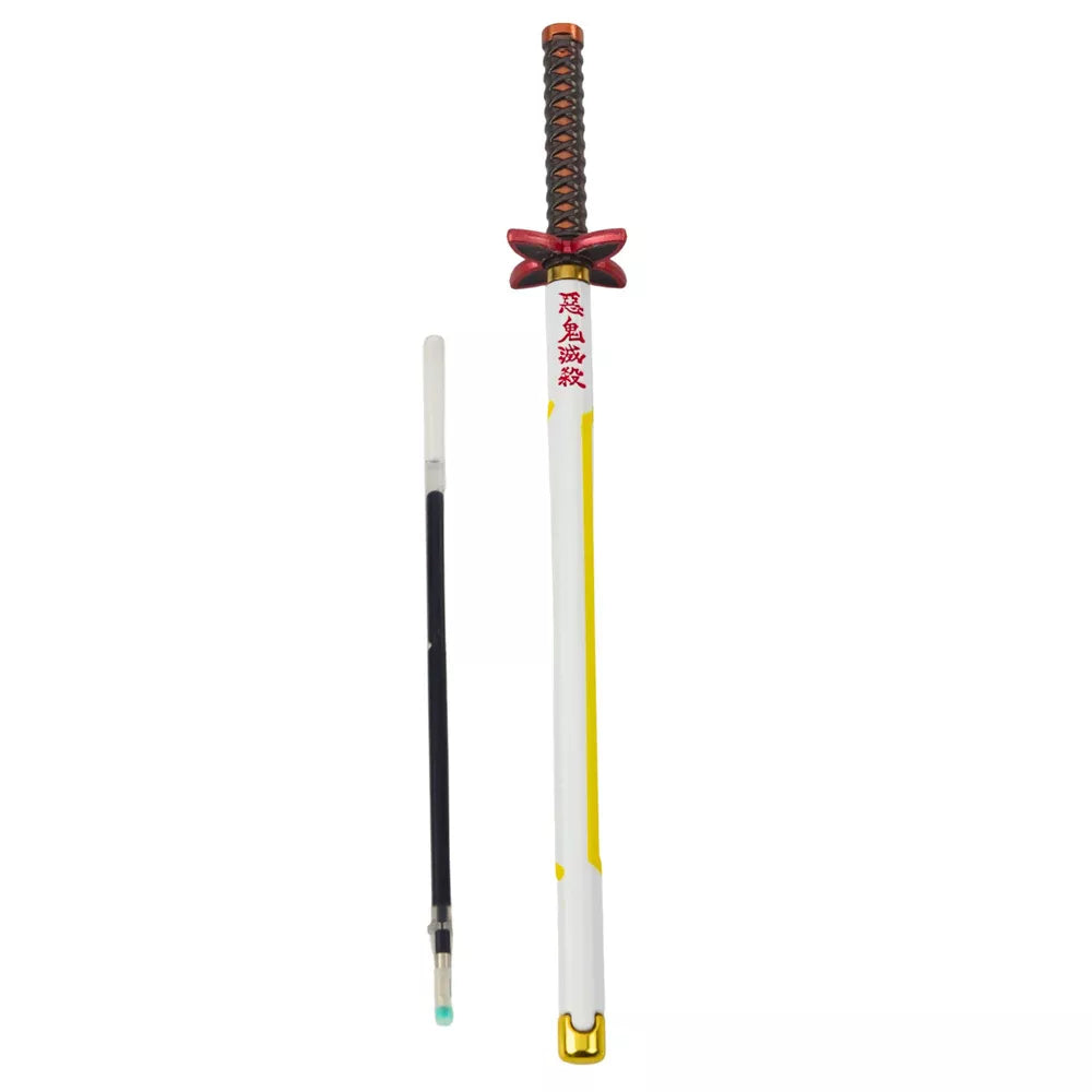 Anime Katana kardas metalinis tušinukas, juodo rašalo, su keičiama šerdelė, baltas ir geltonas