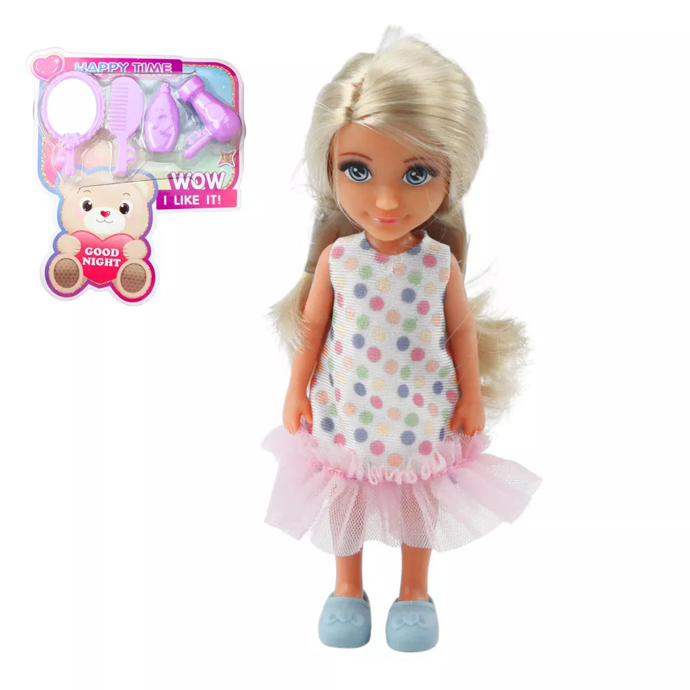 Lėlytė vilki spalvingą suknelę, o pridedami baldai ir aksesuarai daro žaidimo laiką dar realistiškesnį. Tualetinis staliukas leidžia smagiai puoštis ir ruošti lėlytę dienai, o lovytė su minkšta antklode ir pagalve puikiai tinka vaidmenų žaidimo scenoms, susijusioms su poilsiu ir miegu.