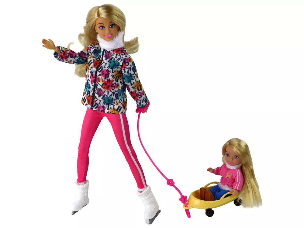 Į rinkinį taip pat įeina daug kitų elementų, kurie paįvairins linksmybes. Mažytė mergaitės lėlė, vilkinti rožinę striukę, mėlynas kelnes ir rudus batus. Ji turi šviesius plaukus ir mėlynas akis, todėl yra žavinga žaidimų draugė. Be to, rinkinyje yra baltas sniego senis su rožine kepure, kuris puikiai atitinka žiemišką nuotaiką. Siekiant užtikrinti saugumą užsiimant veikla sniege, rinkinyje taip pat yra šalmai – vienas didelei lėlei, o rožinis – mažajai.