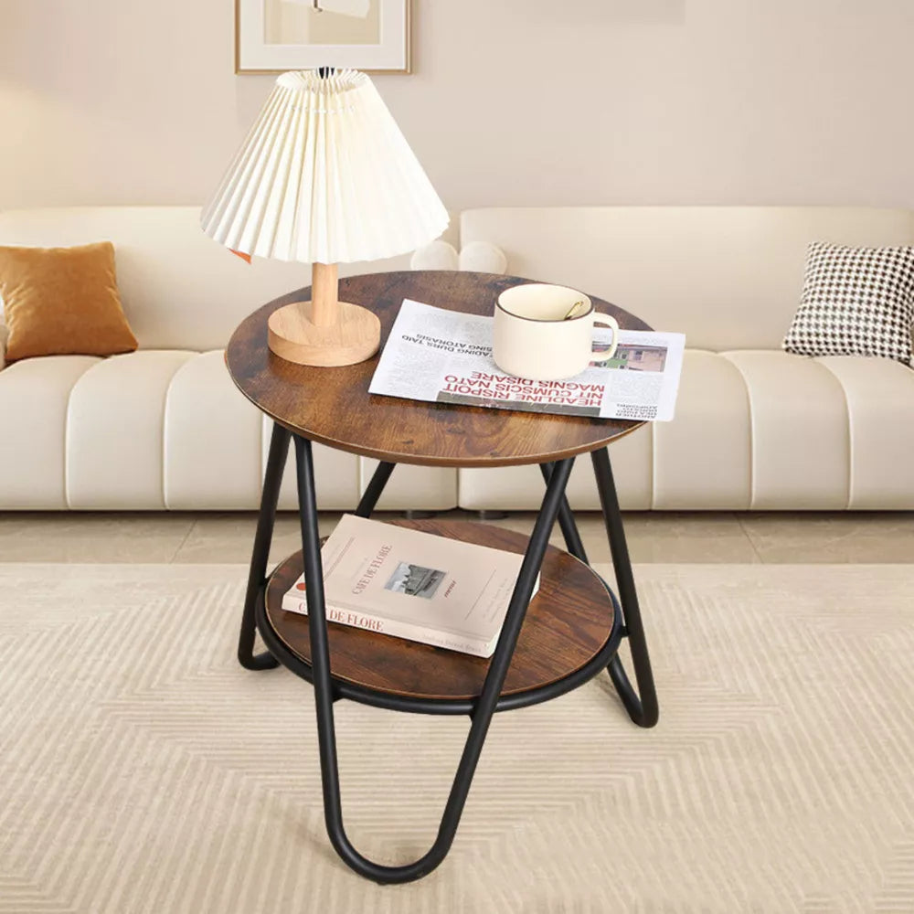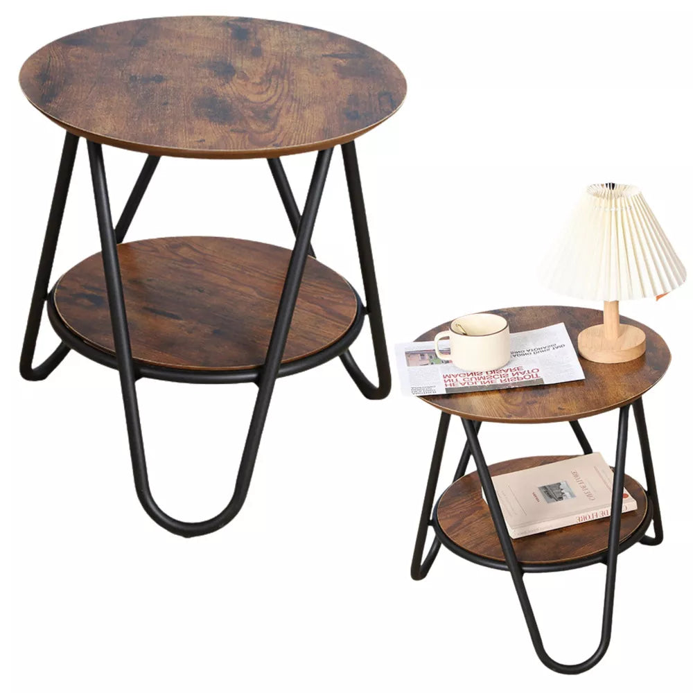 Apvalus kavos staliukas su papildoma lentyna, pramoninis vintažinis, 40x42cm