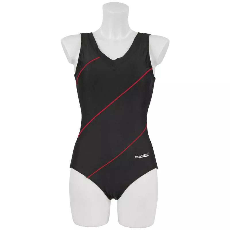 MOTERIŠKAS KOSTIUMAS AQUA-SPEED SOPHIE juoda/raudona 16/441 Savybės: Dvispalvis maudymosi kostiumėlis su puodeliais, suformuotais kaip siluetas. Subtiliai atidengta nugara, žema kojų... Skaityti daugiau