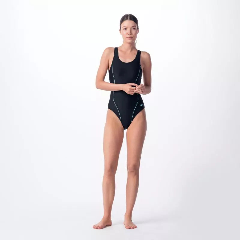Savybės: Moteriškas maudymosi kostiumėlis. Atsparus chlorui. Nuimamos kaušelės. Medžiaga: nailonas, elastanas, poliesteris Spalva: juoda Skaityti daugiau