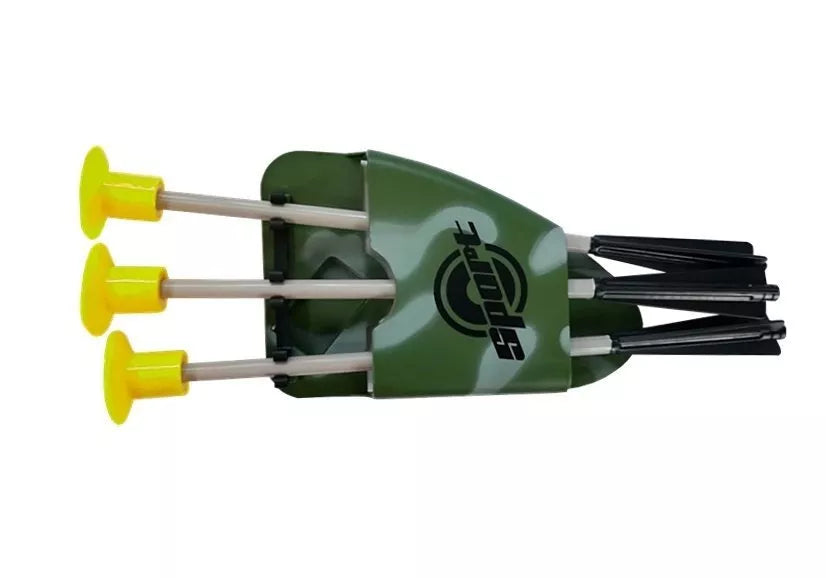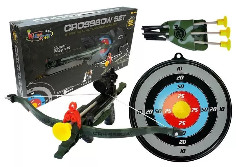 Be arbaleto, į komplektą įeina maskuojamųjų spalvų strėlinė, 3 strėlės su geltonais siurbtukais ir taikinys, leidžiantis treniruotis taikliai šaudyti. Stilinga pakuotė, kurioje gaunate rinkinį, puikiai tinka kaip dovana jaunam žaislinių karinių daiktų entuziastui.