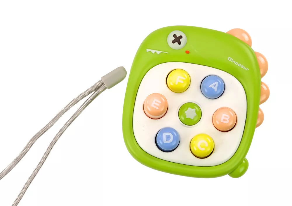 Kišeninis žaidimas „Whack a Mole“ yra interaktyvus edukacinis žaislas, kuris traukia dėmesį savo žalia spalva ir dinozauro išvaizda. Jis skirtas patiems mažiausiems, kurie gali mėgautis žaidimu mokydamiesi naujų dalykų.