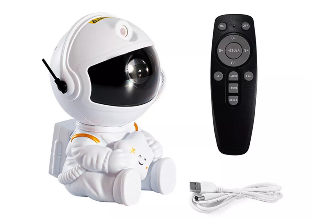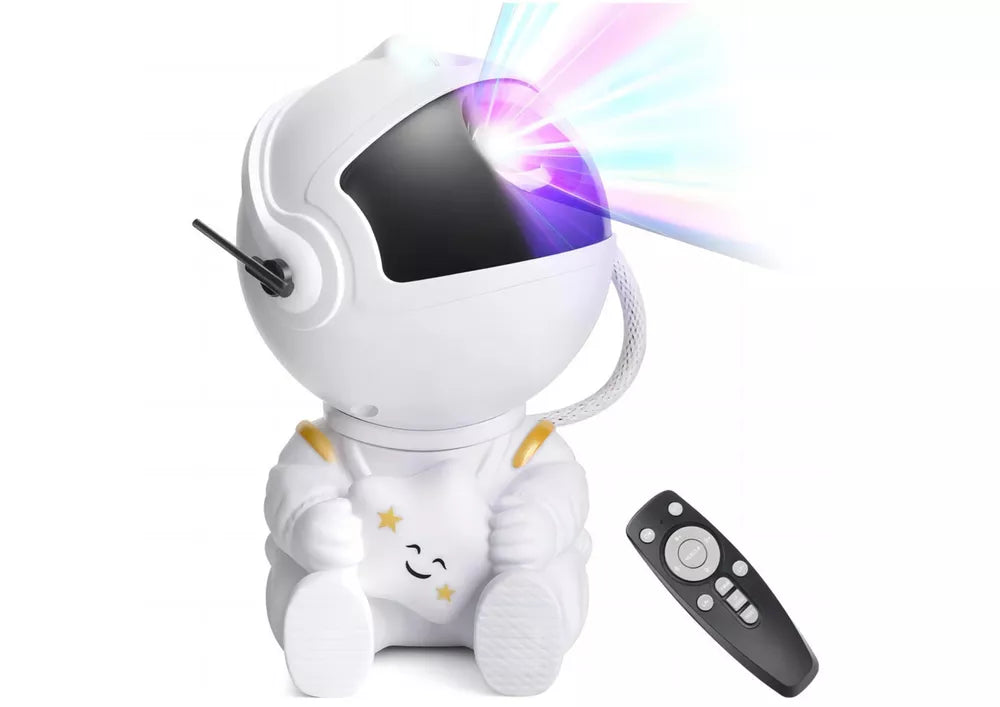 Astronauto žvaigždžių projektorius – tai unikali dekoracija, kuri suteiks magiškos atmosferos bet kuriam interjerui, ypač vaiko kambariui. Šios lempos dėka lubos, sienos ir langai pavirs žvaigždėtu dangumi, sukuriant nepakartojamą atmosferą, skatinančią atsipalaidavimą ir ramų užmigimą. Lempa puikiai atkuria žvaigždes ir galaktikas, leidžiančias mėgautis naktinio dangaus grožiu patogiai savo namuose.