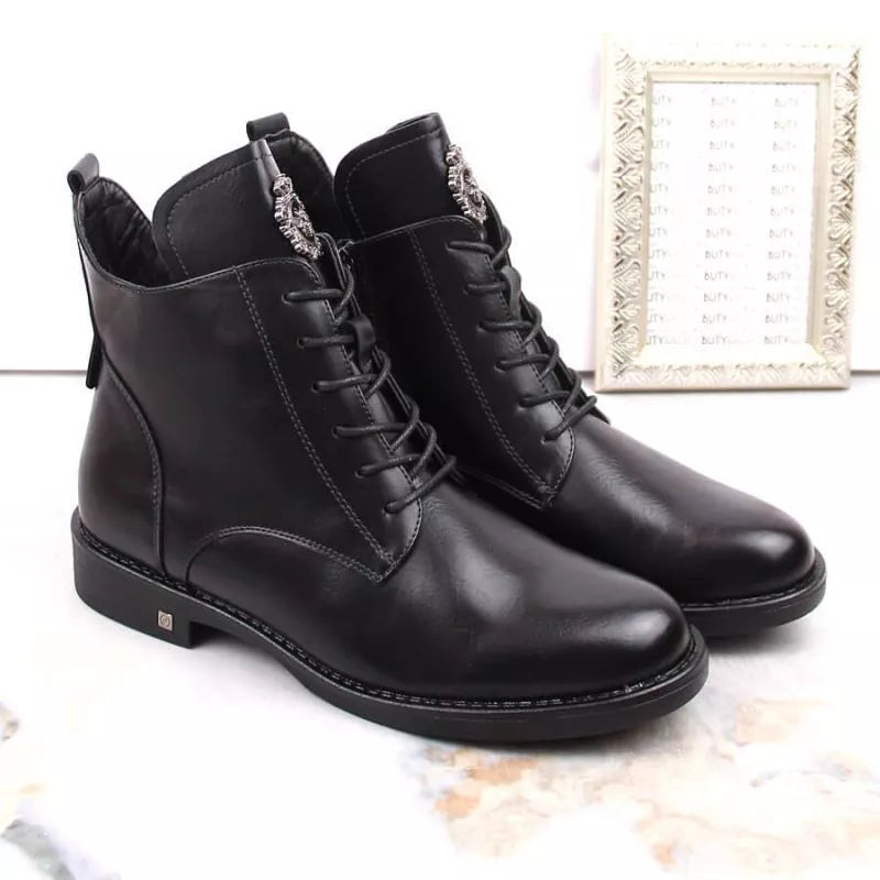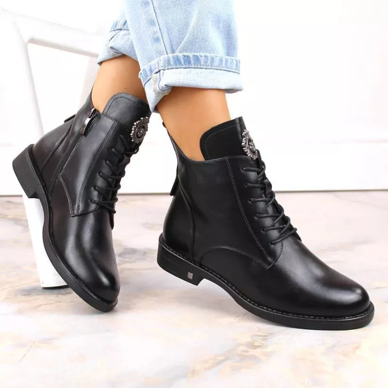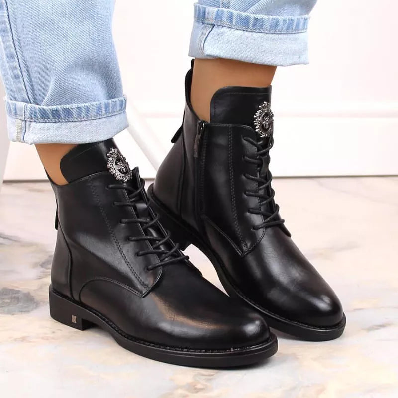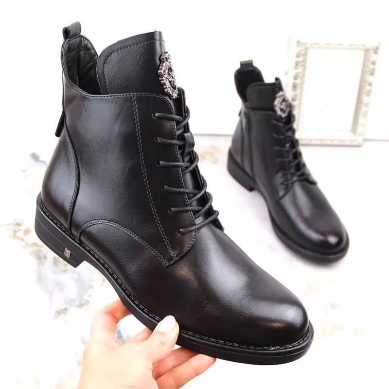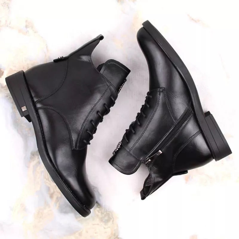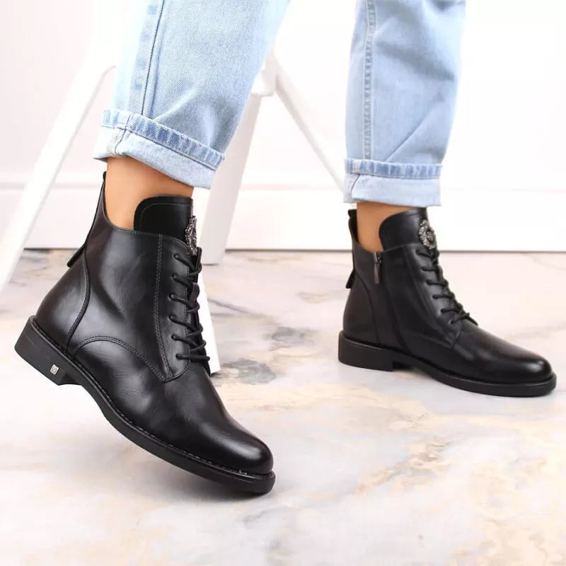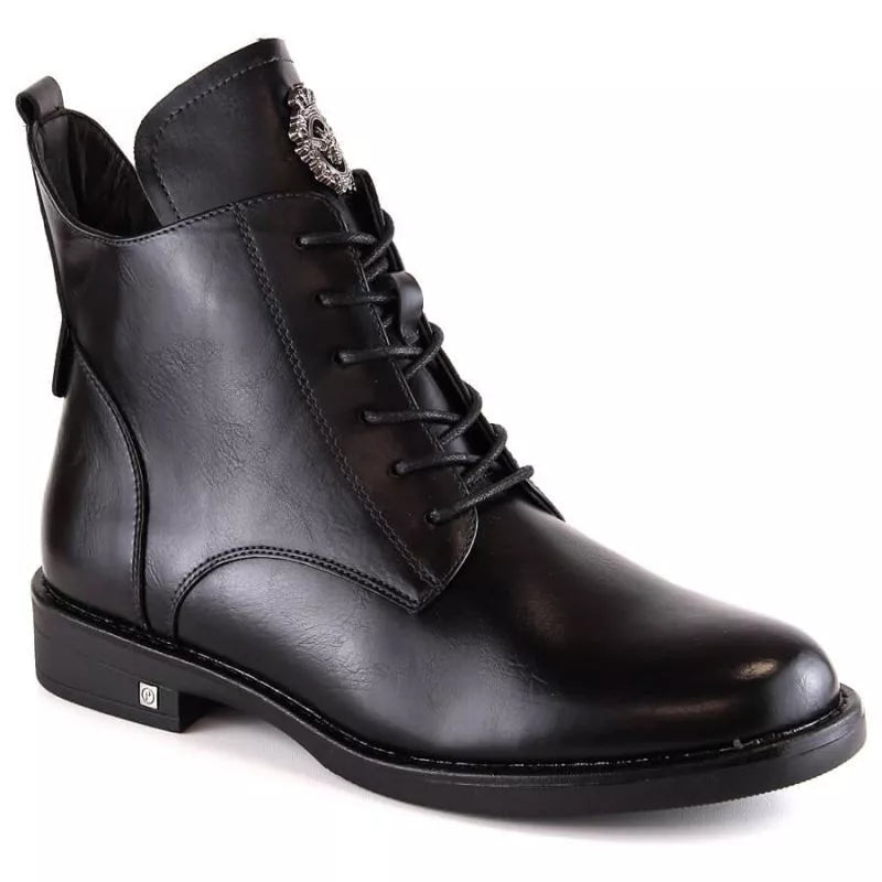 Aukštakulniai batai su raišteliais ir užtrauktuku Potocki W WOL171B juodi