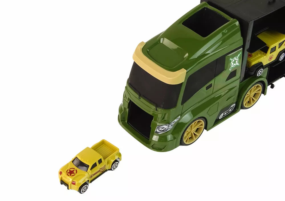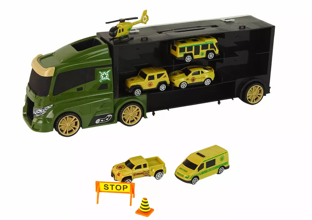 Didelė tralo priekaba leidžia vežti iki šešių mažų transporto priemonių, todėl linksmybės tampa dar įdomesnės. Be to, rinkinyje yra keturi kelio ženklai, kurie padeda sukurti tikrovišką kelio sceną ir moko vaikus kelių eismo taisyklių.
