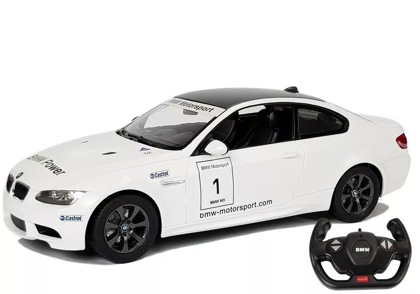 Jei norite tapti sportinio automobilio vairo meistru, šis rinkinys bus jums puikus. Puikus licencijuotas radijo bangomis valdomas BMW M3 automobilis 1:14 masteliu. Modelis, pagamintas pagal BMW licenciją, atkurtas iki smulkiausių detalių. Tai labai gražus ir greitas modelis. Tiek kėbulas, tiek kitos transporto priemonės detalės perkeltos į mažesnį mastelį. Kelyje mašinos siluetas atrodo lengvas ir dinamiškas. Amortizuota pakaba užtikrina sklandų važiavimą. Pramogas sustiprina švytintys priekiniai ir galiniai žibintai, kurie įsijungia važiuojant. Šis daugiafunkcinis žaislas, smagiai leisdamas laiką, lavina mažylio koordinaciją ir motorinius įgūdžius. Patogus nuotolinio valdymo pultas leidžia važiuoti pirmyn ir atgal, taip pat sukti į dešinę ir į kairę.