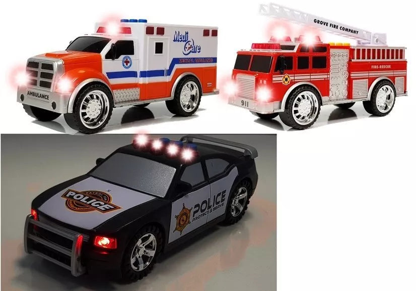 Automobiliai turi šviesos ir garso efektus. Kiekvienas iš jų turi funkcijų mygtukus, paspaudus kuriuos pradeda mirksėti raudonos lemputės ir girdisi sirenų ar garso signalo garsai.