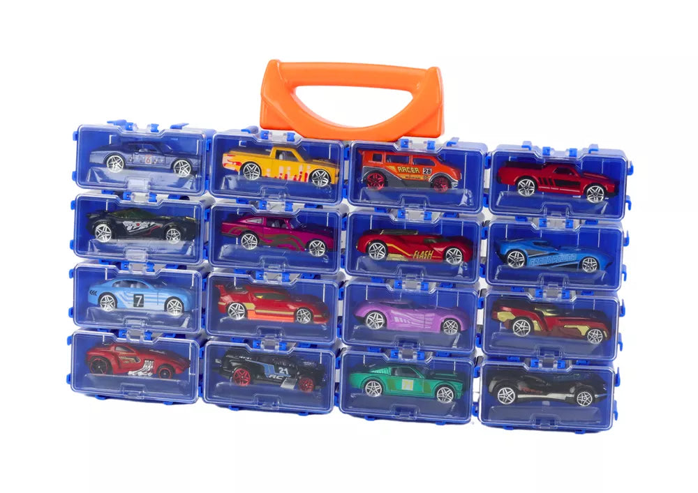 Visi automobiliai yra kruopščiai supakuoti į praktišką lagaminą, kuris yra ne tik estetiškas, bet ir funkcionalus. Lagaminas turi tvirtą rankeną, todėl vaikas gali lengvai nešiotis savo mėgstamus žaislus, kur tik nori žaisti. Lagamino viduje yra pertvaros, užtikrinančios, kad kiekvienas automobilis turėtų savo vietą. Pertvaros yra uždaros, todėl automobiliai ne juda transportavimo metu.