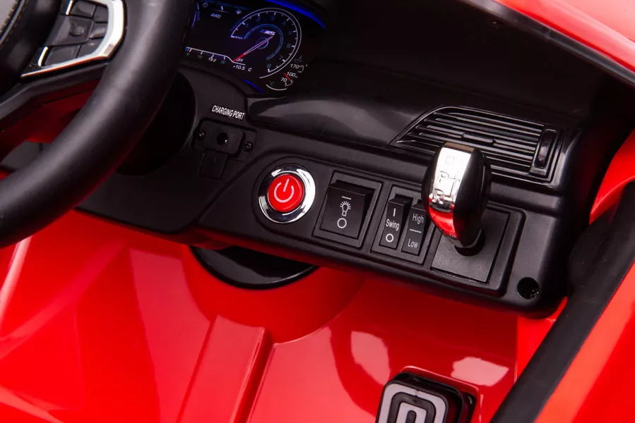 Automobiliukas su baterijomis BMW M5 su platforma tėvams, raudonas, lakuotas