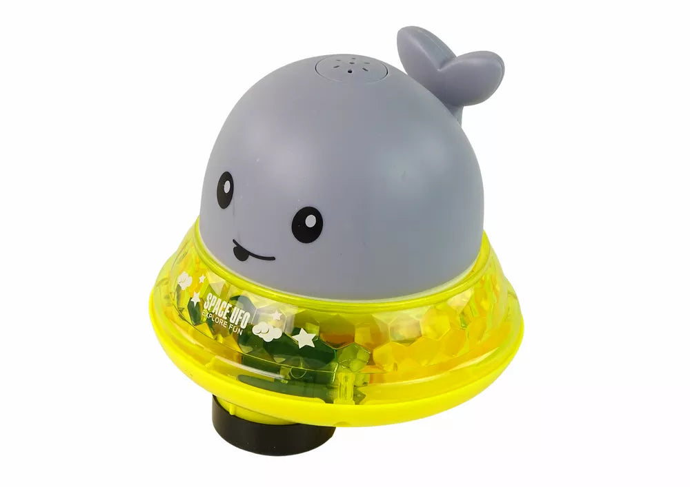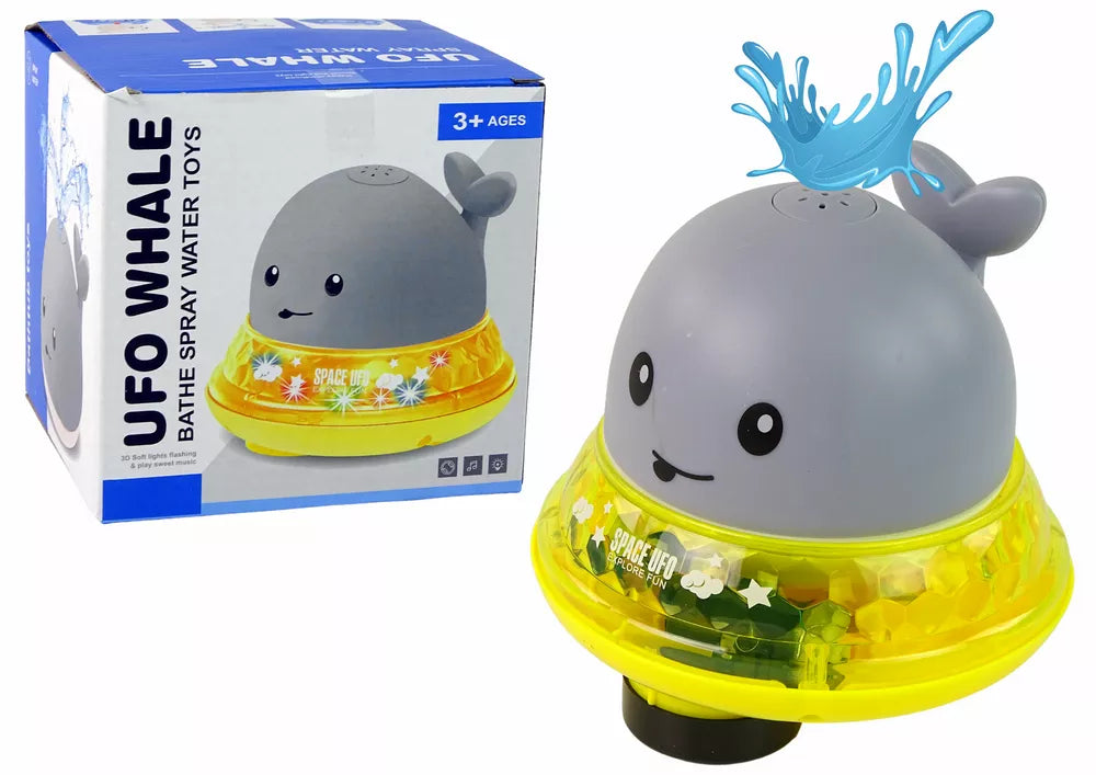 Banginis, purškiantis vandenį su stovu, pilkas vonios žaislas