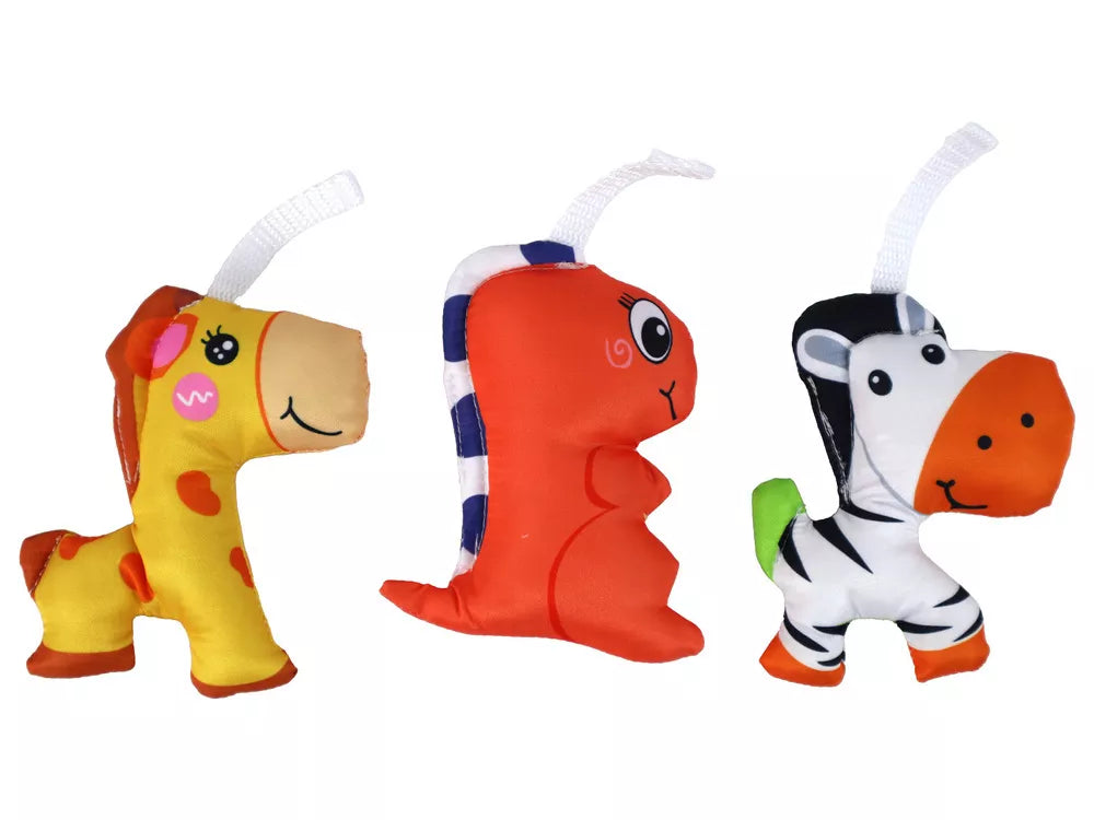 3 pliušiniai pakabukai (zebras, žirafa, dinozauras)