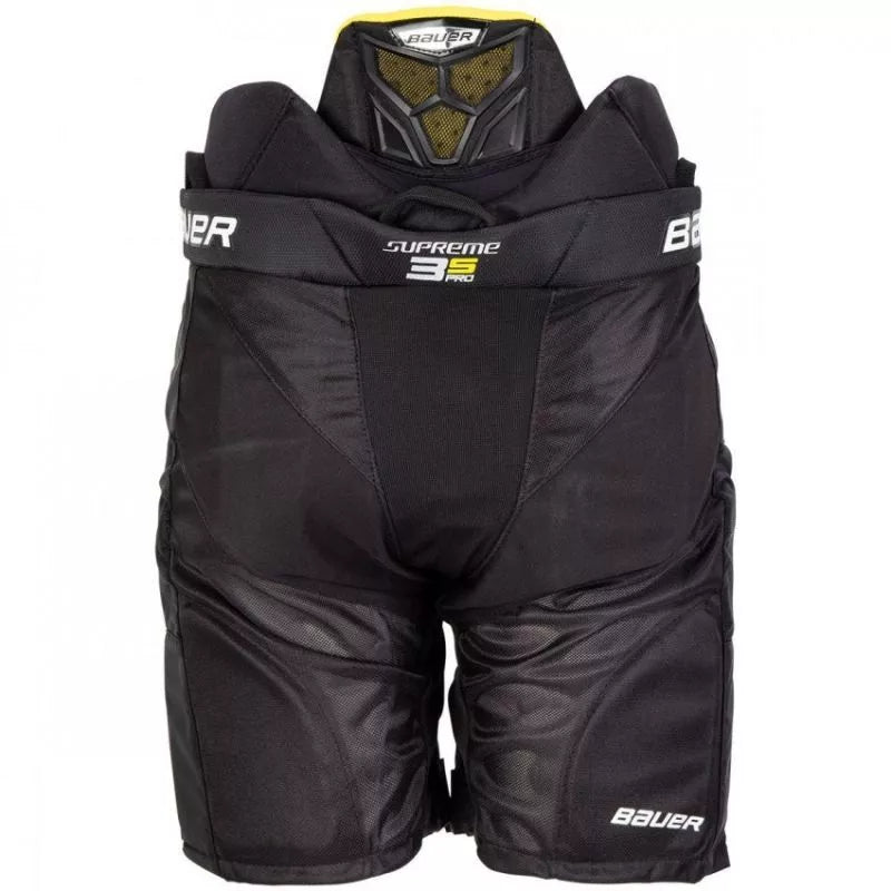 Bauer Supreme 3S Pro Jr. hokejaus kelnės sukurtos žaidėjams, ieškantiems tradicinio Bauer klasikinio kirpimo su aukščiausio lygio apsauga. 3S Pro modelis, paremtas Supreme 2S kelnėmis, turi patobulintą apsaugą šlaunų ir klubų srityse bei patobulintą 840D nailono apvalkalą profesionaliam stiliui. Bauer Supreme 3S Pro pasižymi 840D nailono apvalkalu su papildomomis dangomis dėvėjimosi vietose, siekiant pagerinti ilgaamžiškumą. Bauer taip pat pridėjo tamprumo zonas vidinėje šlaunų pusėje ir tarpkojo srityje, leidžiančias kojoms judėti natūraliau be apribojimų. Šlaunų pagalvėlės 3S Pro kelnėse pagamintos iš didelio tankio putplasčio su formuotu PE (polietileno) įdėklu. Jos yra anatomiškai suformuotos ir gražiai apglėbia koją. Pagalvėlės yra nuimamos.