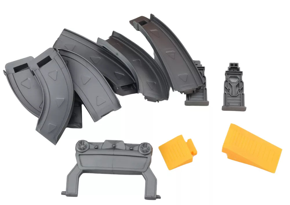 Į rinkinį įeina 6 veiksmo pasiruošę automobiliai, kuriuos po surinkimo galima laikyti bazės viduje. Bazė taip pat gali būti naudojama kaip žaislinių automobilių saugojimo vieta, o patogi rankena leidžia ją nešiotis kaip lagaminą, todėl rinkinys yra praktiškas ir lengvai transportuojamas.