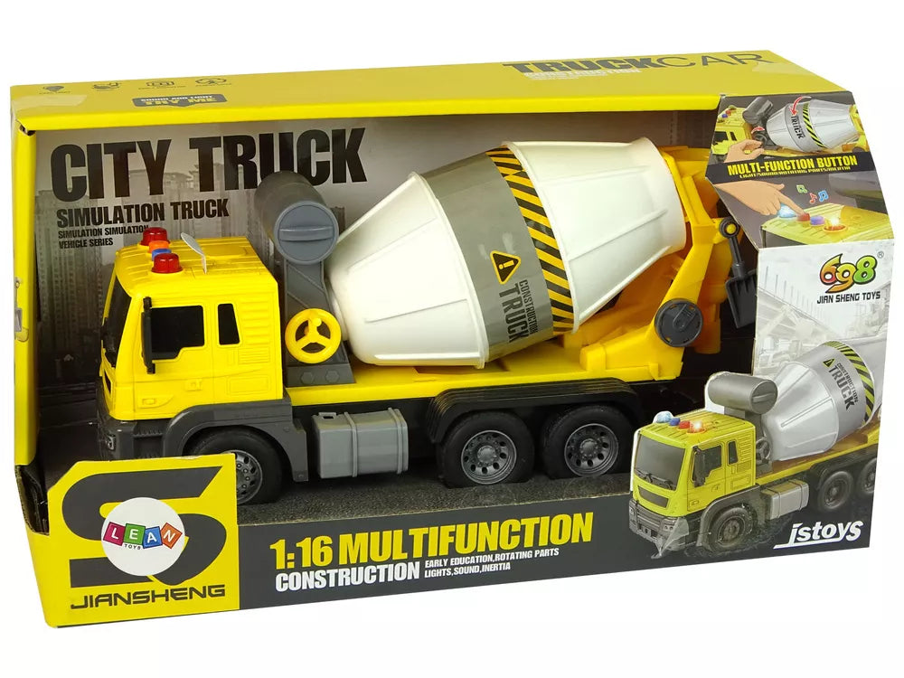 Betono maišytuvas – transporto priemonė, kurios neturėtų trūkti jokioje statybvietėje! Idealiai tinka jauniems statybininkams, norintiems pasinerti į statybų pasaulį. Šis 1:16 mastelio žaislas su tikroviška išvaizda, judančia besisukančia kriauše ir garso bei šviesos efektais suteiks daug džiaugsmo ir lavins įgūdžius.