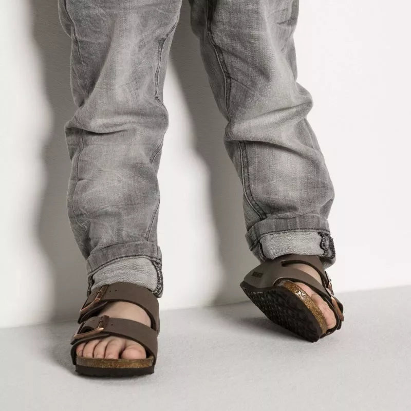 Birkenstock Arizona Kids Birko-Flor Nubuk Mocha siauri šlepetės vaikams (0552893)