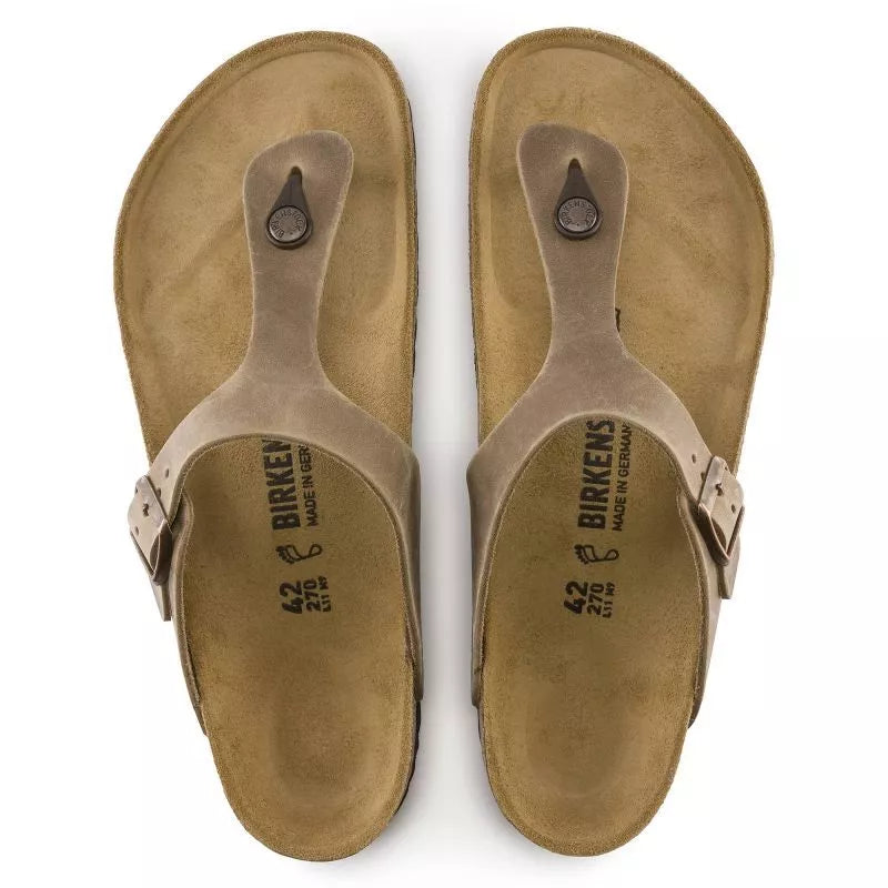 Birkenstock Gizeh Tobacco Brown siauros moteriškos šlepetės iš alyvuotos odos (0943813)