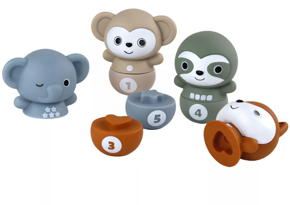 Ant kiekvieno iš 6 kėglių pavaizduotas skirtingas gyvūnas ir yra numeris, kuris padeda mokytis skaičiuoti ir atpažinti skaičius. Be to, kėgliai gali būti padalinti į dvi dalis, atskleidžiant skirtingas formas, kurias reikia suderinti, o tai stimuliuoja vaiko pažinimo vystymąsi.