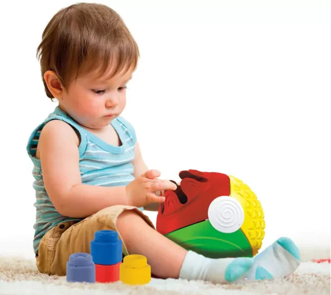Kamuolys padalintas į 4 spalvingas dalis, kurių kiekviena turi skirtingą tekstūrą, stimuliuojančią kūdikių lūžio ir regėjimo pojūčius.