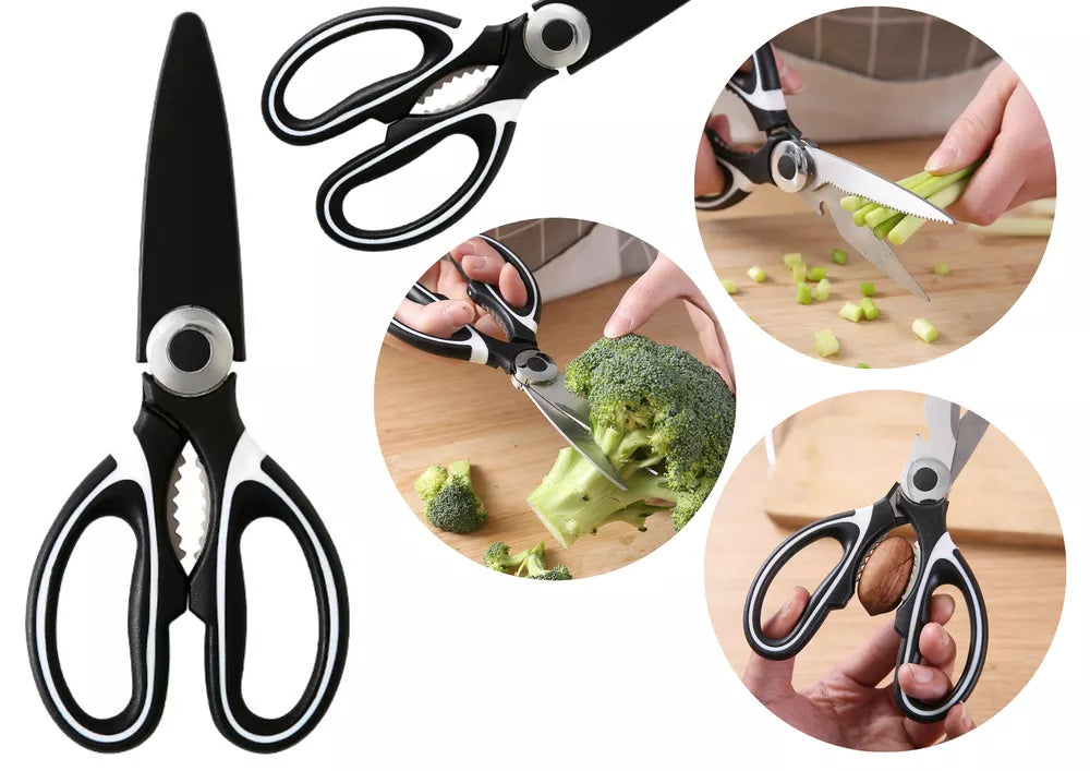 ✅ Daugiafunkciškumas – žirklės tarnauja kaip butelių atidarytuvas, riešutų skaldyklė, žvynų grandiklis, taip pat kaip klasikinės virtuvinės žirklės pjovimui.