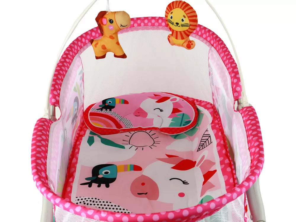 2in1 Bujaczek supamasis krėslas yra daugiafunkcinis sprendimas, kuris suteiks jūsų vaikui tiek linksmybių, tiek atsipalaidavimo. Jis siūlo patogią lovą, kilimėlį ir supamąjį krėslą viename. Šis universalus gultas taip pat turi įmontuotą tinklelį ir baldakimą, apsaugantį jūsų vaiką nuo vabzdžių ir saulės, leidžiantį ramiai miegoti lauke. Rožinė spalva sukuria draugišką ir kviečiančią aplinką. Supamąjį krėslą galima paversti stabilia lova atlenkus kojas. Gulto medžiaga taip pat gali būti naudojama kaip patogus kilimėlis žaidimams ant grindų.