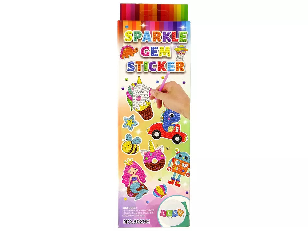 Rinkinį sudaro skirtingų spalvų kristalai, kuriais galite papuošti lipdukus. Paviršius, skirtas deimantams klijuoti, yra padengtas klijų sluoksniu, o ant paviršiaus pažymėti skaičiai nurodys, kokią spalvą naudoti. Dėliokite po vieną ir sukurkite mažą meno kūrinį!