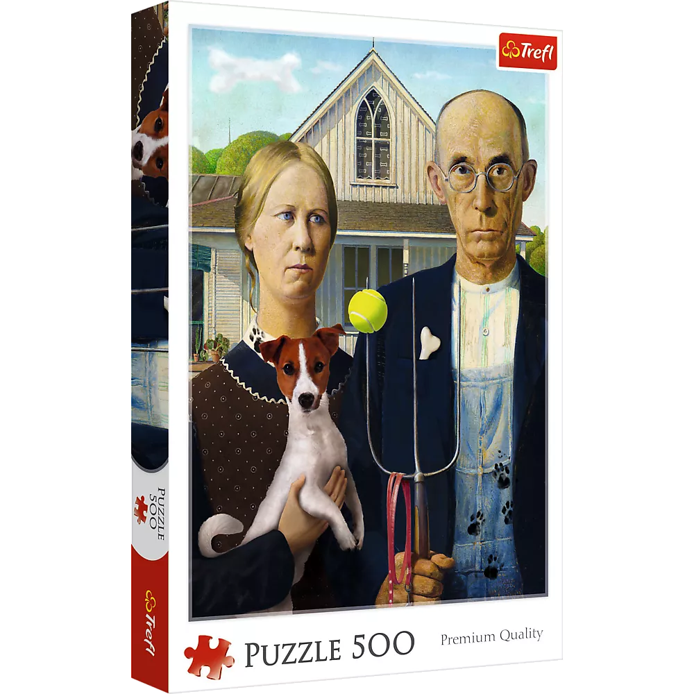 Dėlionė – 500 dalių – „Amerikietiška gotika: šuns leidimas“ Trefl 37526