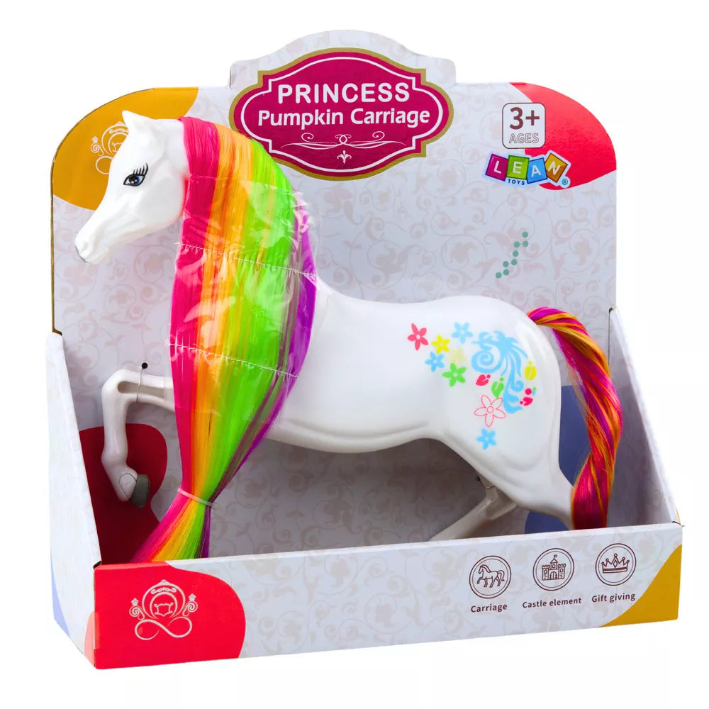 Didelė figūrėlė pasakų arklys Vaivorykštės karčiai Spalvingos dekoracijos Baltas
