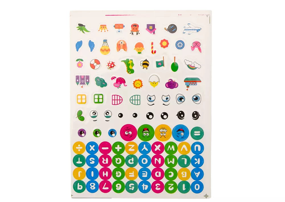 Papildomas rinkinio privalumas – lipdukai su raidėmis, skaičiais ir įvairiais motyvais, kurie leidžia suasmeninti pastatą ir mokytis žaidžiant. Jų dėka vaikas gali lavinti savo pažinimo ir rankų įgūdžius, natūraliai ir patraukliai mokydamasis raidžių ir skaičių.