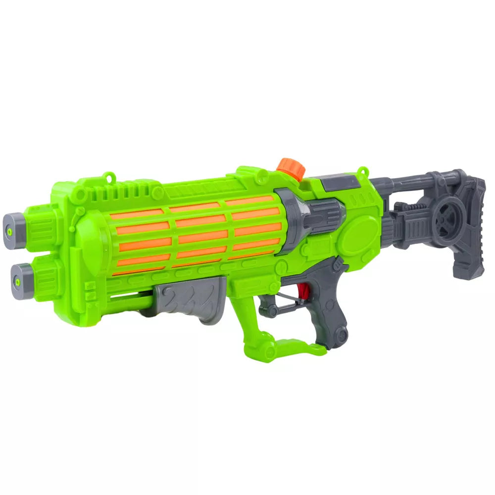 Šis didelis neoninis žalias vandens šautuvas garantuoja puikų pasilinksminimą sode, paplūdimyje, prie ežero ar per atostogų keliones. Dėl įspūdingo ilgio ir didelės talpyklos, šis modelis leidžia ilgai rengti vandens atakas, nereikia dažnai papildyti.