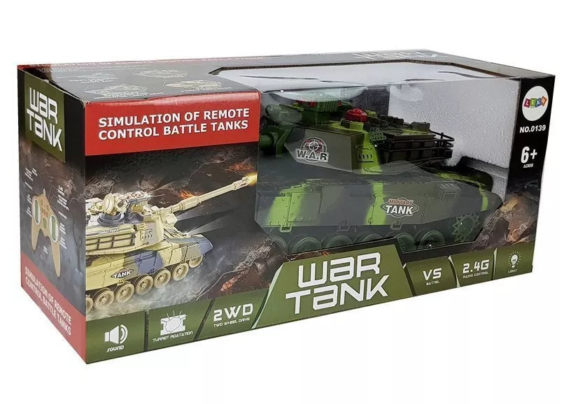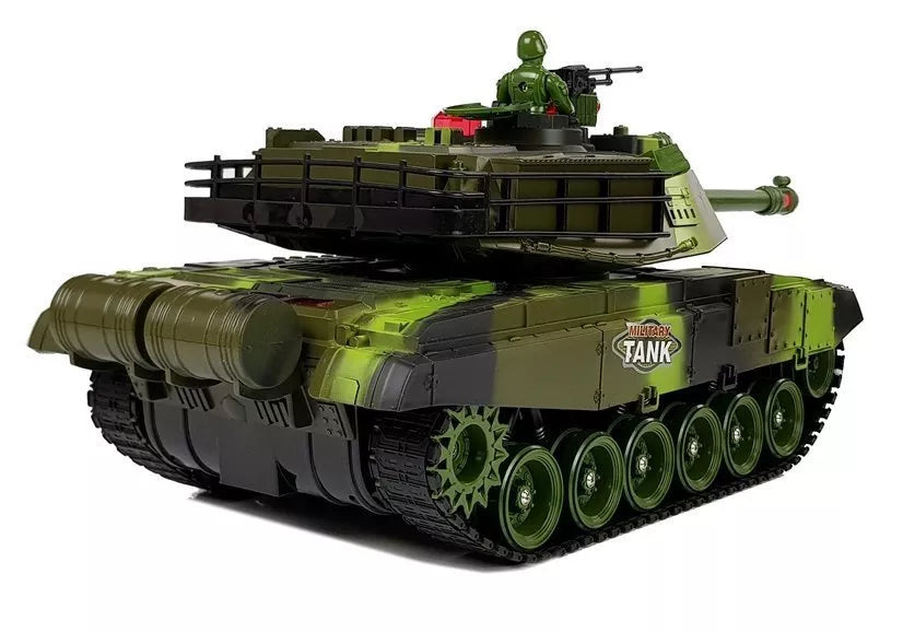 Tankas yra karinės spalvos, žalios ir juodos, vikšrinės padangos imituoja tikro tanko važiavimą. Šaudant iš patrankos, jis elgiasi kaip tikras tankas ir matomas transporto priemonės atatranka atgal. Ant stogo yra liukas, į kurį galima įdėti kareivį ir šaudyti į priešus. Šviečiantys diodai ir garso efektai, imituojantys važiavimą ir variklio garsą, padarys jį matomą iš tolo, o jūsų užduotis bus išvengti apšaudymo ir numušti savo priešą.