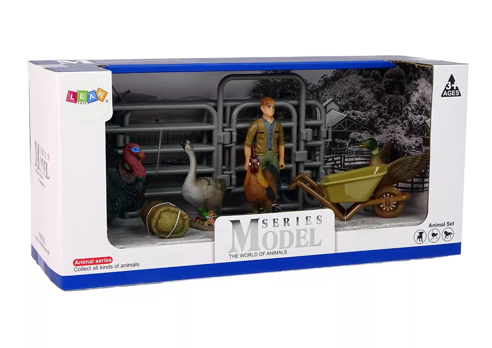 Ūkio gyvūnų figūrėlių rinkinys leidžia vaikams susikurti savo ūkį su ūkininku, aptvaru ir gyvūnais. Puikiai tinka jauniems ūkių ir veisimo mėgėjams. Dėl kruopštaus darbo figūrėlės primena tikrus gyvūnus, o žaidimas lavina vaiko vaizduotę, tikslumą ir griebimą.