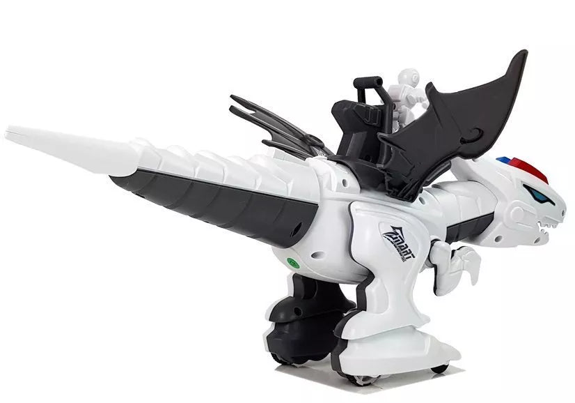 Dinozauras atrodo ir gražus, ir dinamiškas. Jis turi burną su stipriais žandikauliais, galingas apatines galūnes ir ilgą, botagą primenančią uodegą. Ant jo nugaros yra žmogaus figūra, valdanti dinozaurą. Mechaninis gyvūnas taip pat turi robotų elementų – jo akys švyti. Fone girdima muzika, didžiausias dinozauro privalumas – programavimas. Dinozauras valdomas nuotolinio valdymo pultu, kuris patogiai telpa rankoje. Juo galite duoti jam komandas, jis turi įrašymo funkciją. Dinozauras reaguos į tokias funkcijas kaip judėjimas ar šokis. Rinkinyje yra naudojimo instrukcija.