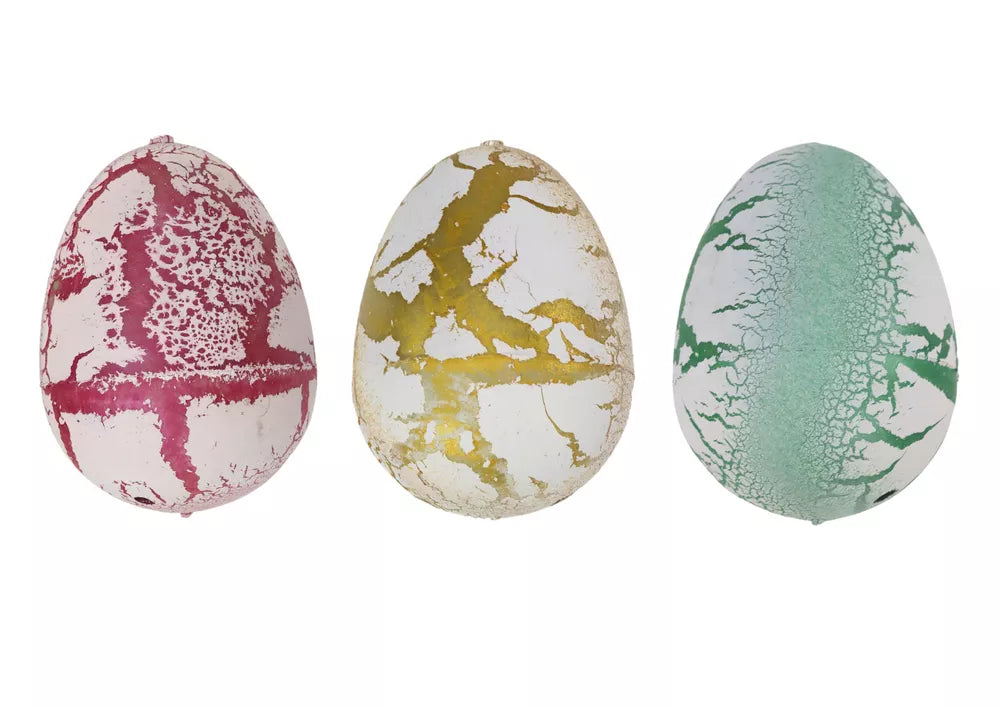 Kiaušiniai su dinozaurais – tai žavus rinkinys, kuris patraukia vaikų dėmesį ir skatina jų smalsumą gamtai. Kiekvienas kiaušinis pagamintas iš kevalo, kuris turi specialiai sukurtas skylutes, leidžiančias vandeniui patekti į vidų. Kiekvieno kiaušinio viduje yra mažas dinozauras, kuris, panardintas į vandenį, pradeda sugerti vandenį ir palaipsniui didėja.