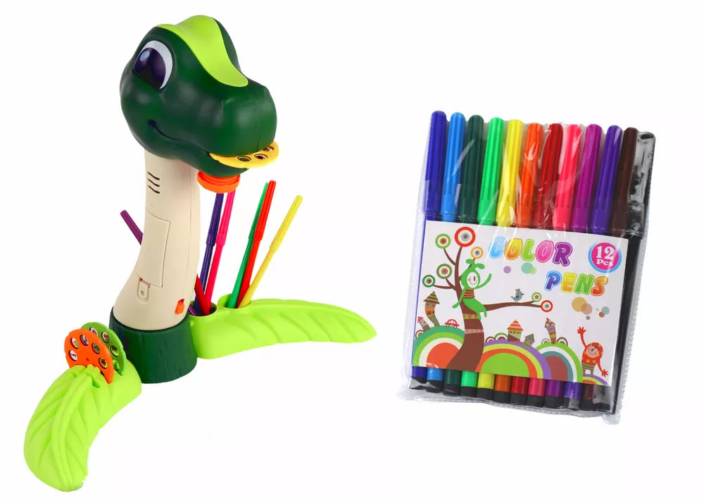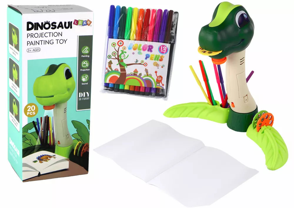 Dinozaurų piešimo projektorius su garsais ir priedais