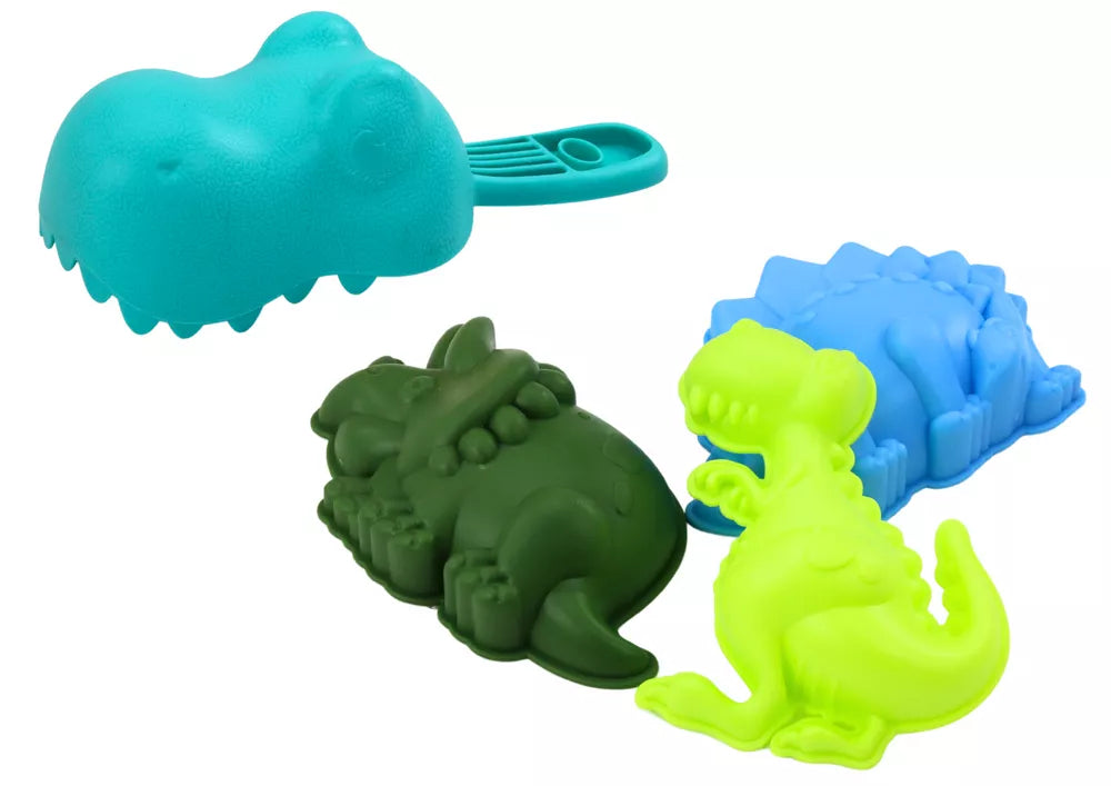 Rinkinyje yra trys spalvingos dinozaurų formos formelės, kurias vaikai gali naudoti kurdami smėlio scenas ir nuotykius su priešistoriniais gyvūnais. Šios formelės taip pat lavina vaikų vaizduotę ir praturtina žaidimą.