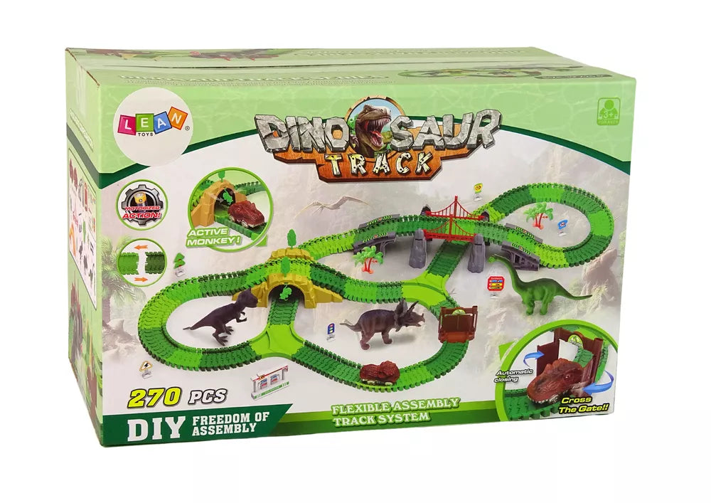 Dinozaurų trasą sudaro paprastų takelių rinkinys, kuriuos galima lengvai sujungti į įvairias konfigūracijas, kad būtų sukurtos skirtingos dinozaurų trasos. Rinkinyje taip pat yra spalvingų ir realistiškų šių nuostabių būtybių figūrėlių, kurios patraukia dėmesį ir skatina vaikus žaisti. Rinkinyje taip pat yra elementų, tokių kaip augalai ir medžiai, kuriuos galima pastatyti šalia trasos, kad būtų sukurtas realistiškas kraštovaizdis, leidžiantis jūsų vaikui kurti savo dinozaurų istorijas ir žaisti sukurtame pasaulyje.