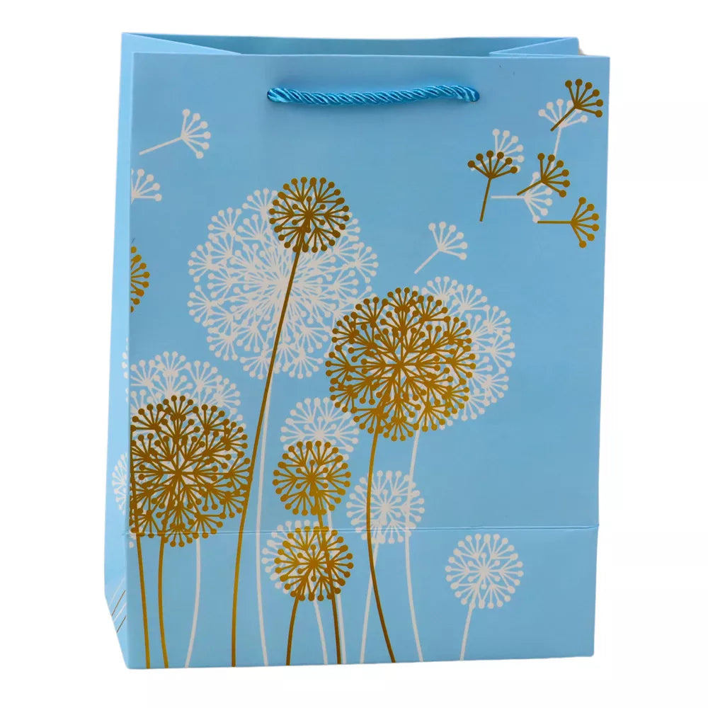 Elegantiškas dovanų maišelis su subtiliu ir natūraliu dizainu yra puikus pasirinkimas bet kokiai progai – nuo gimtadienių ir jubiliejų iki vestuvių ir šeimos susibūrimų. Maišelis išsiskiria gražiu kiaulpienės motyvu, kuris sukuria subtilų ir harmoningą efektą. Aukso ir baltos spalvos akcentai suteikia visam daiktui prabangos, pabrėždami dovanos unikalumą.