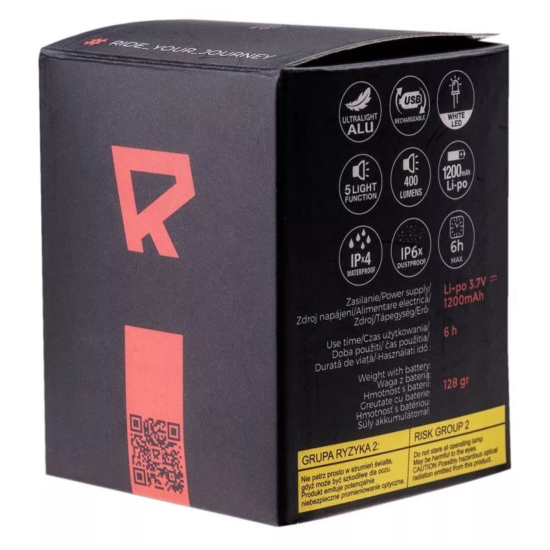 Dviračio žibintas Svoris: 130 g Medžiagos sudėtis: Aliuminis, ABS, silikonas Savybės: Liumenai: maks. 400 lm Baltas LED 5 režimai: stiprus,... Skaityti daugiau