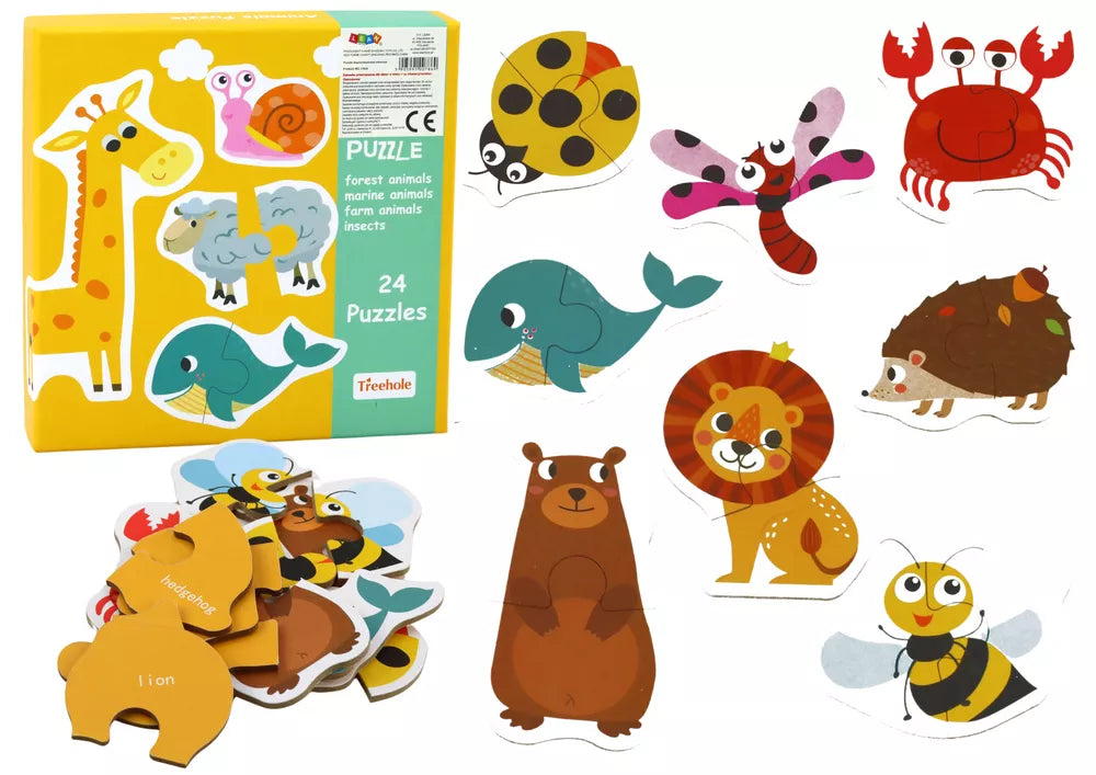 Dėlionės tikrai unikalios, rinkinyje yra 24 skirtingi gyvūnai, kurių kiekvienas padalintas į dvi dėliones. Vaiko užduotis – sujungti dėlionės dalis, kad sukurtų pilną gyvūno paveikslą. Tai ne tik puiki pramoga, bet ir puikus būdas lavinti loginį mąstymą bei rankų ir akių koordinacijos įgūdžius.